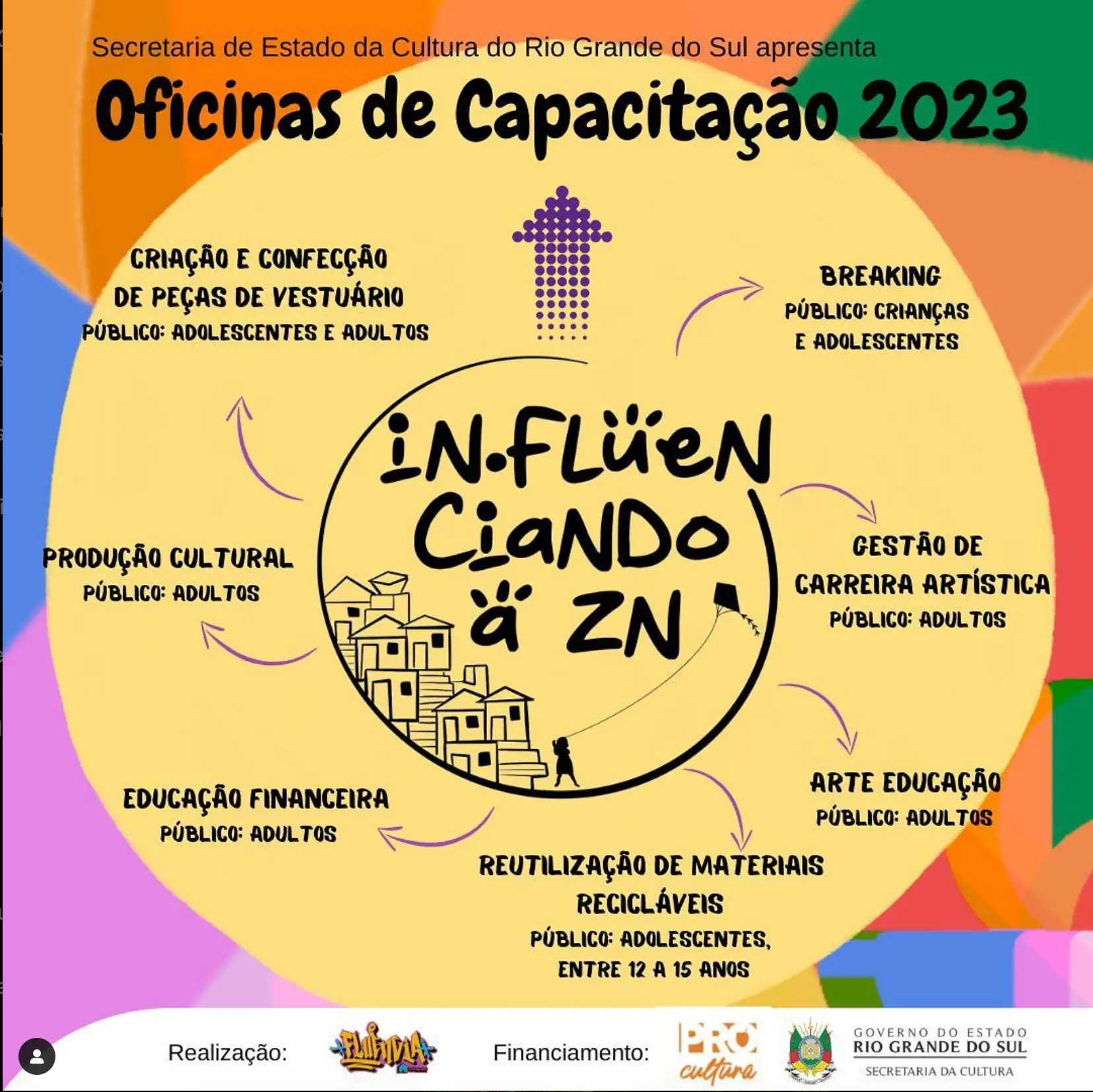 O IN.Fluenciando a ZN, realizado no ano de 2023, foi um projeto cultural focado no fortalecimento da comunidade da Zona Norte de Caxias do Sul, oferecendo uma série de oficinas de qualificação e formação artística, além de promover a cultura local por meio de iniciativas como o podcast Chapa Quente e o curta-documental Meu Norte é a Norte. O projeto visou capacitar a comunidade em diversas áreas, como arte-educação, dança Breaking, educação financeira, gestão de carreira artística, produção cultural e reutilização de materiais recicláveis, além de realizar um diagnóstico territorial para mapear as necessidades e demandas da região. Com a colaboração ativa da comunidade, o projeto gerou um impacto significativo no fortalecimento cultural e social da Zona Norte.