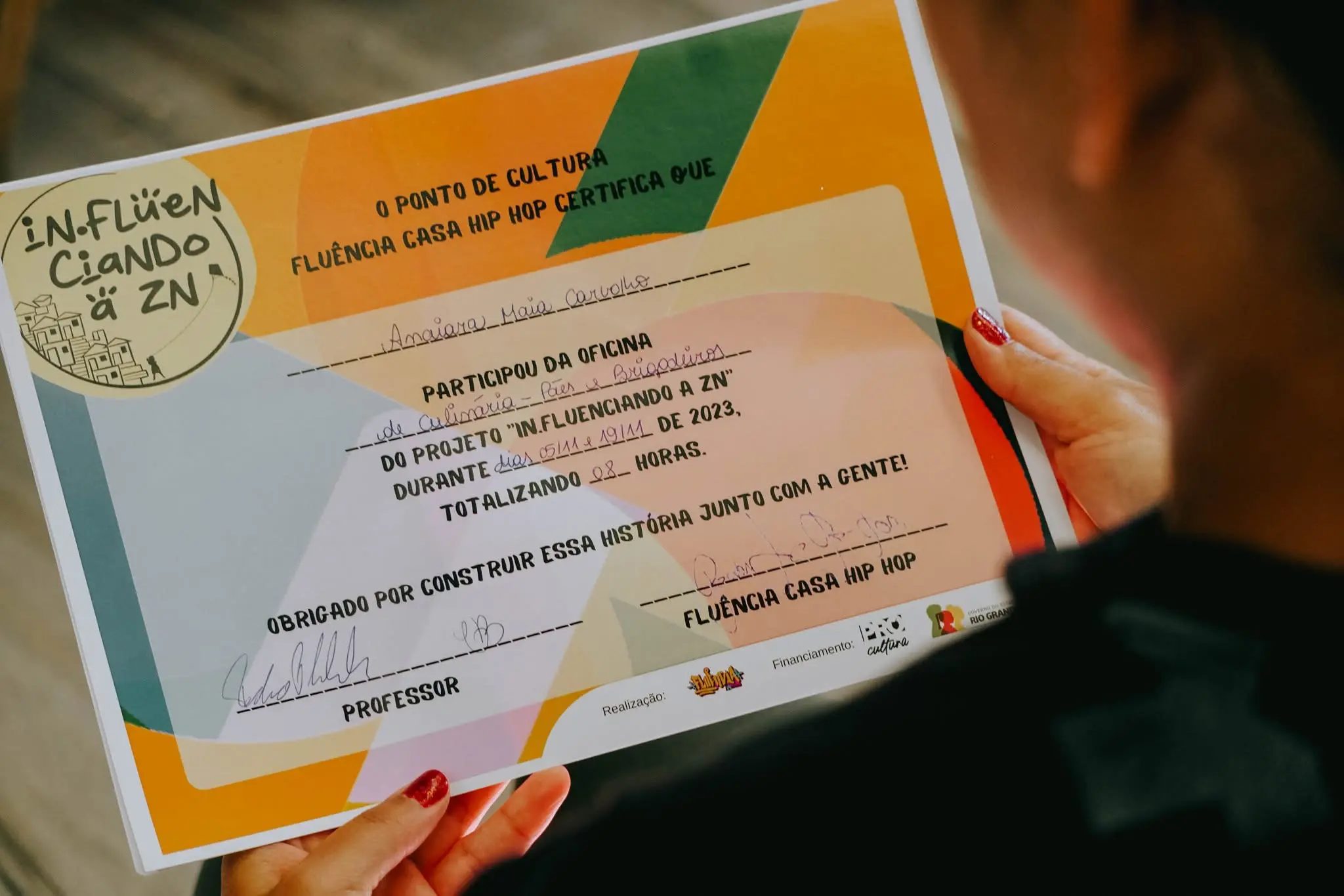 - 10 oficinas de qualificação e formação artística, abrangendo temas como arte-educação, dança Breaking, educação financeira e gestão de carreira artística, com 113 pessoas beneficiadas e 136 certificações emitidas.