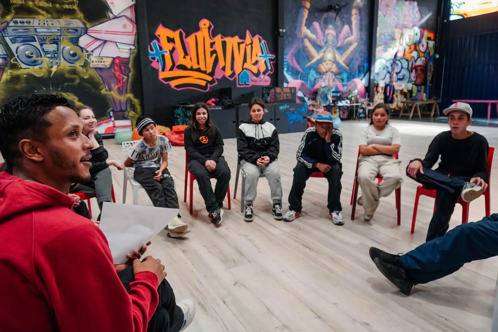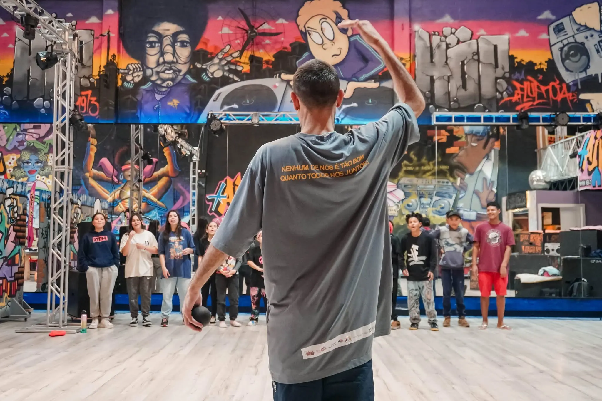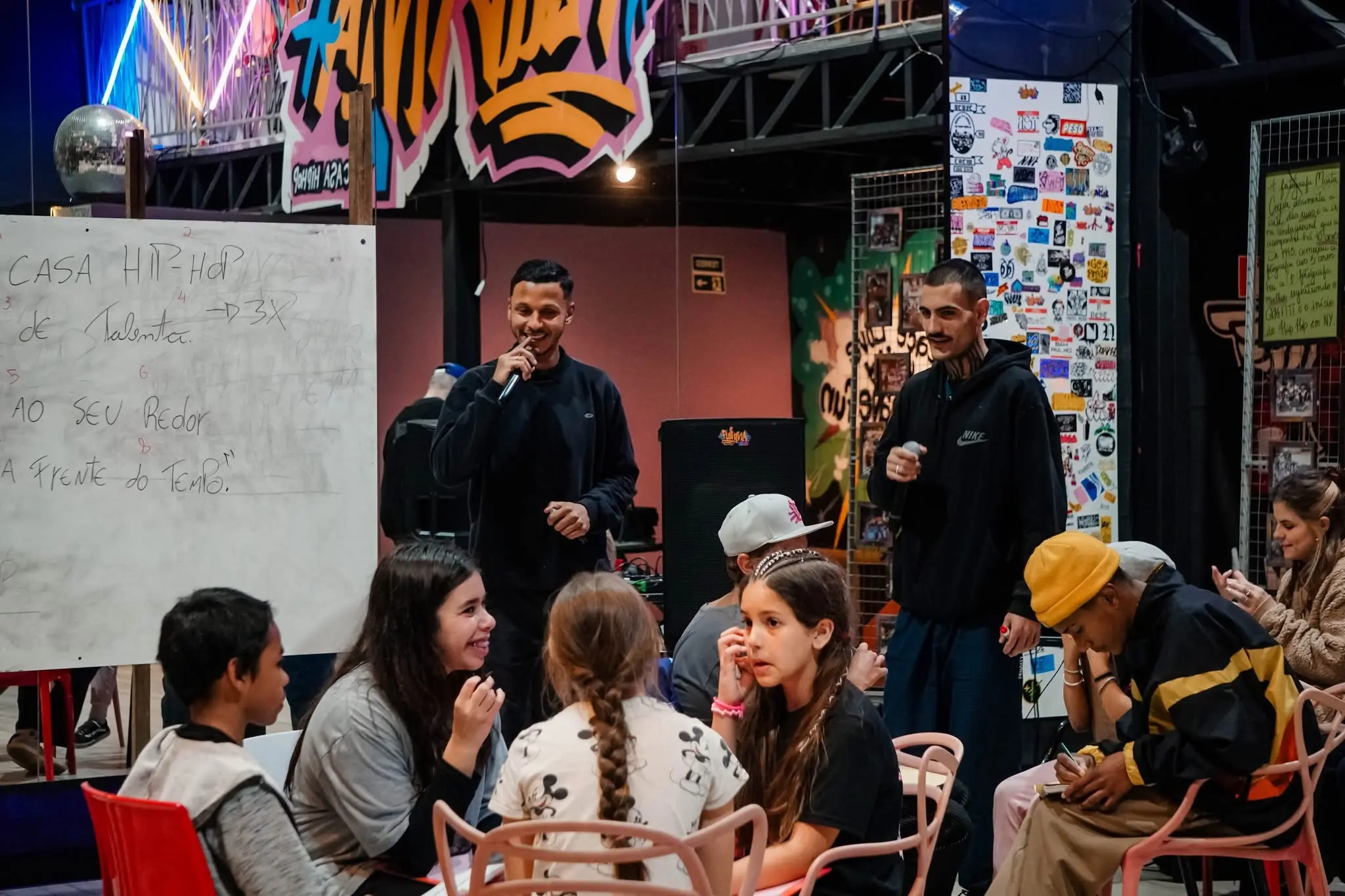 - Criação coletiva da música “Casa Hip Hop Cheia de Talento” durante as oficinas de rima.